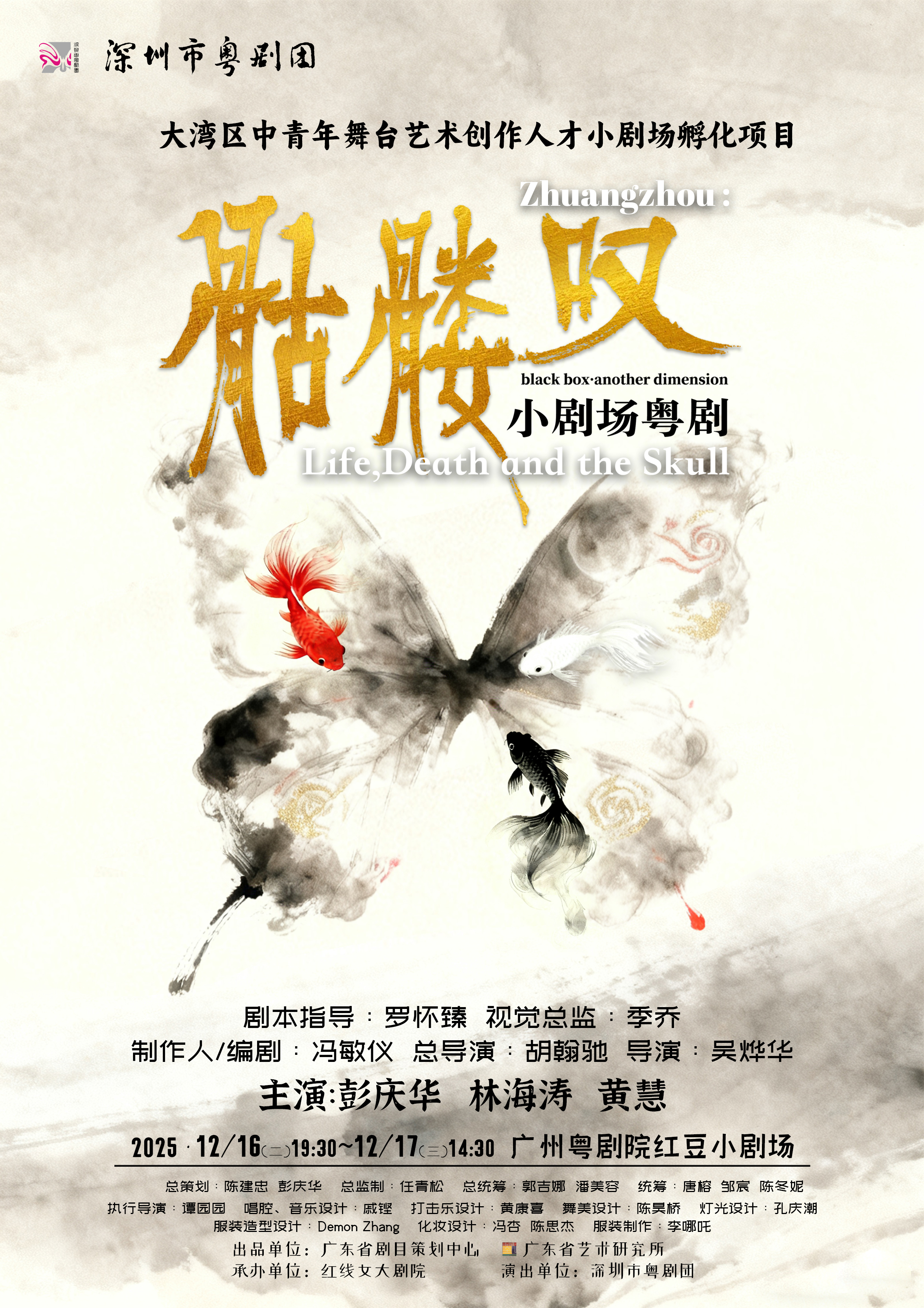 粤剧《骷髅叹》灵感源自《庄子·至乐》,通过庄周与骷髅的奇幻相遇,展开一段关于生死、身份与真实的哲思对话。该剧尝试以实验小剧场形式重构粤剧叙事与空间,引发对生命意义的当代思考。